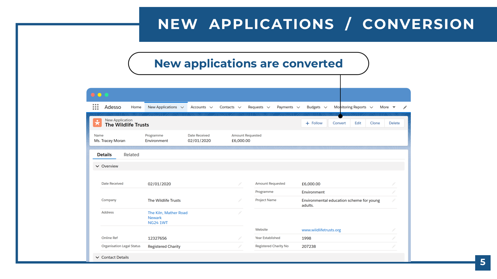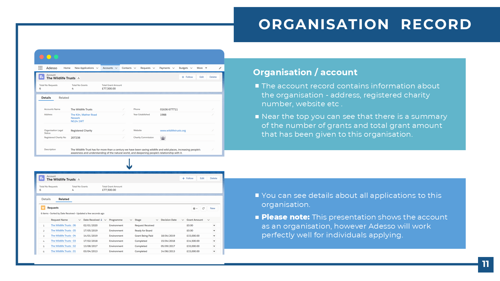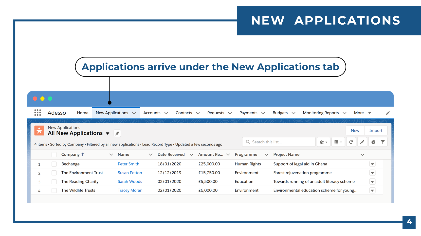 Adesso is a Salesforce application that will help you streamline your grant management. By installing Adesso, Salesforce becomes a leading-edge grant management system which can be customised to your requirements.